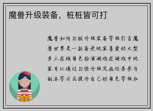 魔兽战士如何修炼宠物装备技能 引言: 魔兽世界中,宠物是战士们的得力助手,通过合理的装备和技能训练,能够提升宠物的战斗力。本文将详细介绍魔兽战士如何修炼宠物装备技能,帮助战士们更好地培养自己的宠物。 ...